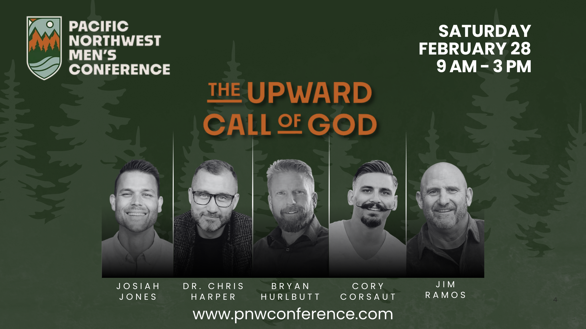 The Pacific Northwest Men’s Conference isn’t just another event—it’s an upward call. This year's theme, THE UPWARD CALL OF GOD, is about leaning forward, breaking free from mediocrity, and stepping fully into your identity and purpose as a man of God.